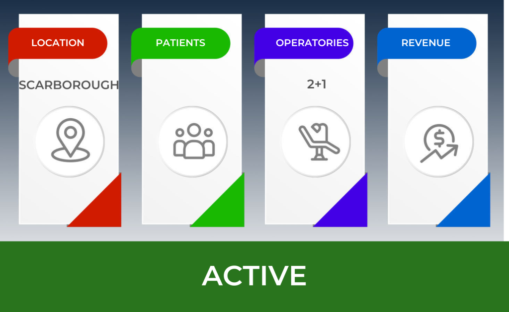 The practice is situated on the third floor of a 4 story row style commercial condominium, surrounded by retail commercial and residential in central Scarborough. The 1,100 square foot features 2 +1 well equipped operatories, Pan room and sterilization room. There is ample free parking around the building.